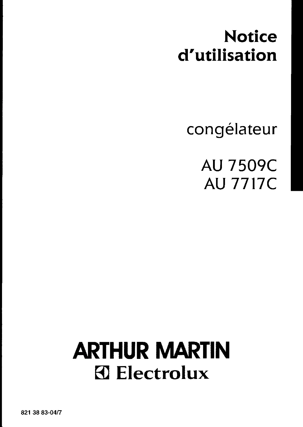 Instrukcje zamrażarka Arthur Martin-Electrolux