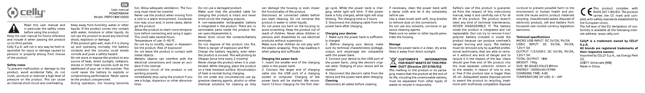 Przeczytaj poniżej 📖 instrukcję obsługi w języku polskim dla Celly PD18W (28 stron) w kategorii bank mocy. Ta instrukcja była pomocna dla 17 osób i została oceniona przez 7 użytkowników na średnio 4.8 gwiazdek