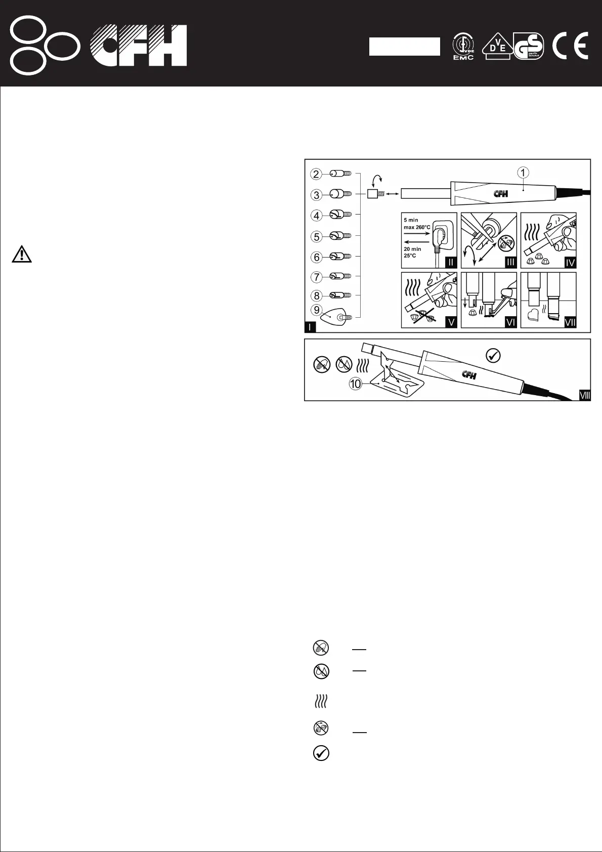 Do not touch the tip of the tool! The tip is very hot! Risk of burns!