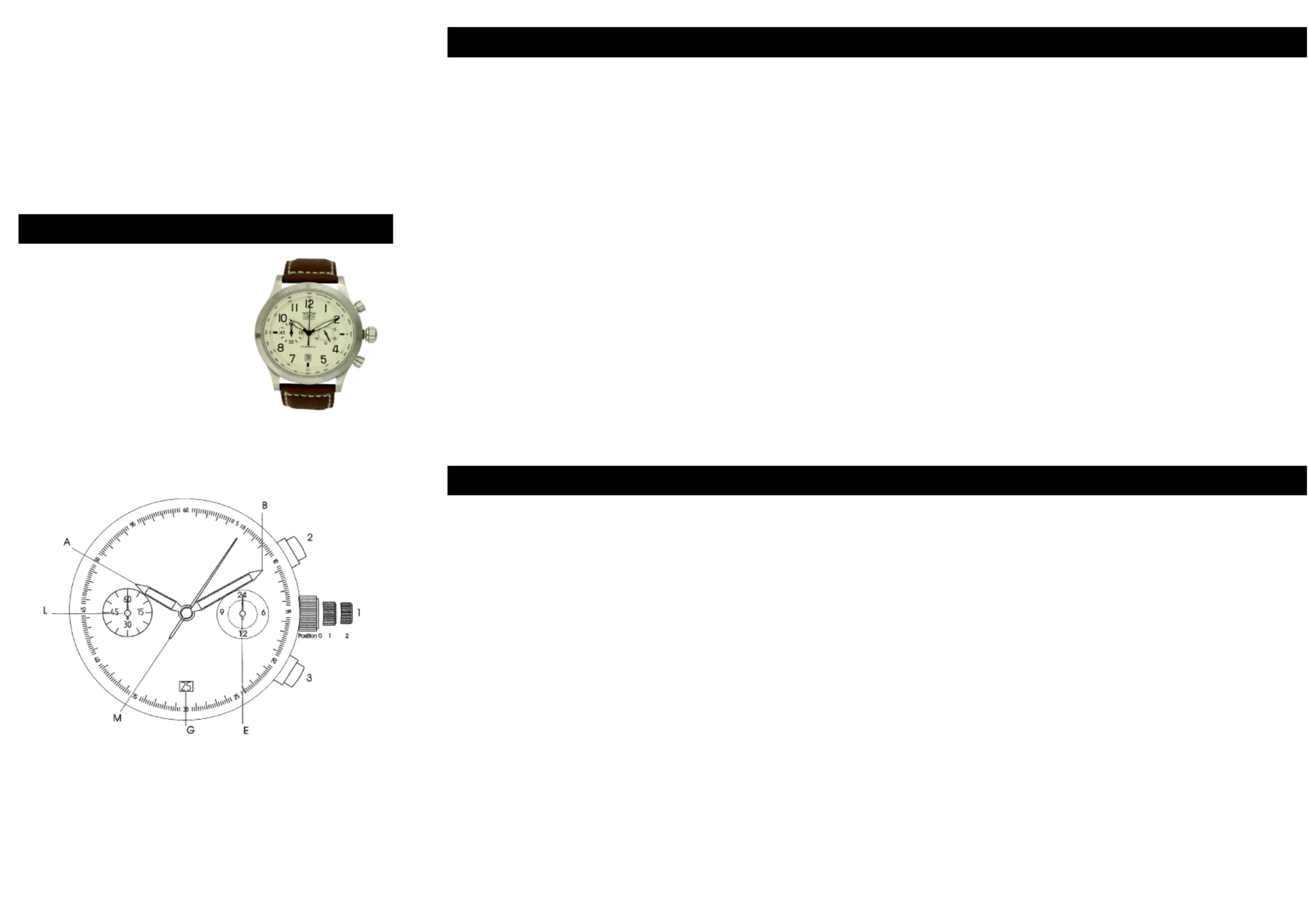 Sekundenzeiger (M) auf den Null Position steht. Zum Schluß drucken Sie die Krone (1)