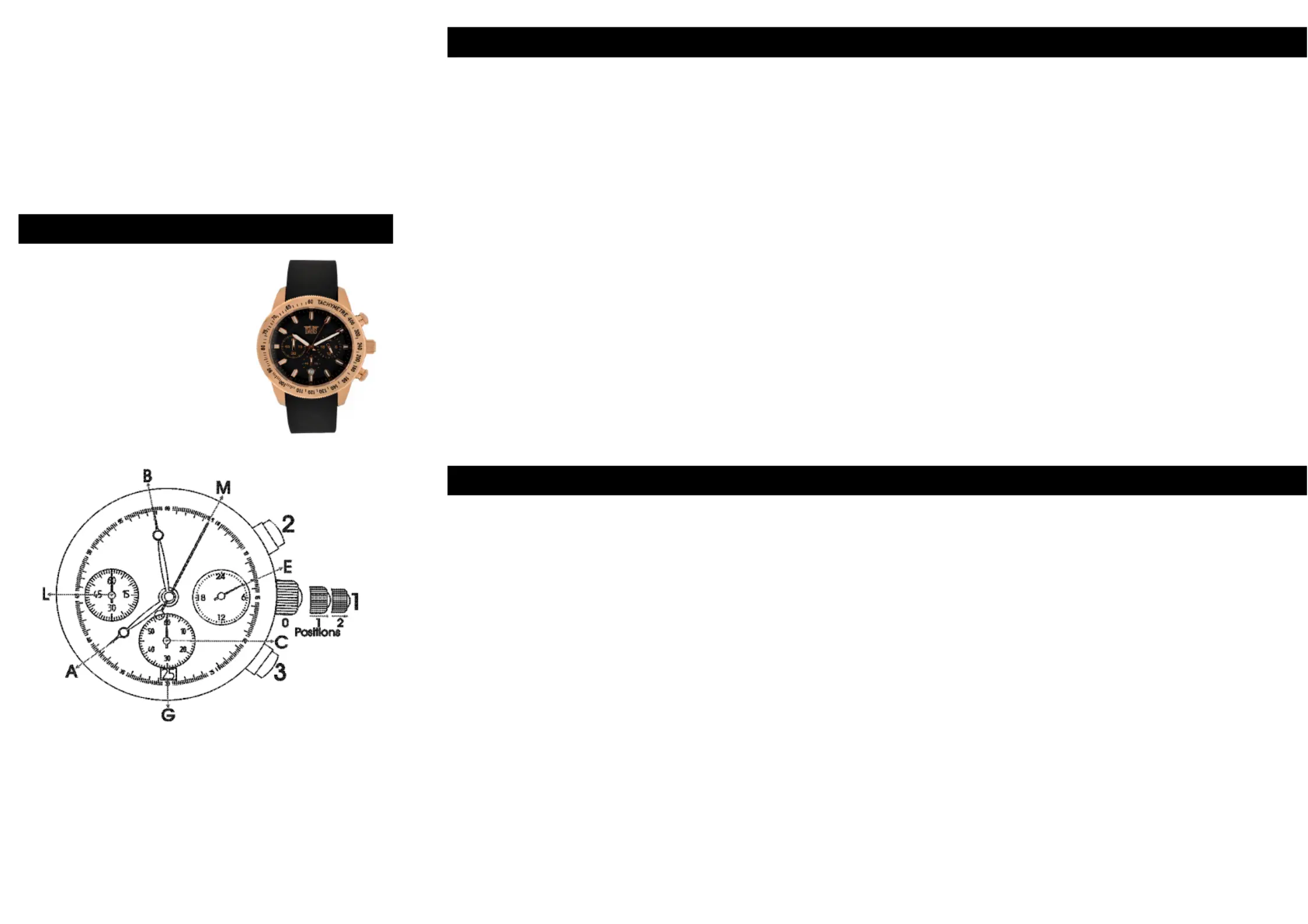 Pull out the crown (1) to position 2. Both hands (M) and (L) will turn