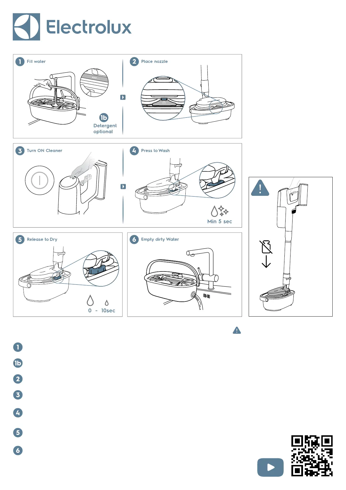 the cleaner in an upright position (min 5 sec).
