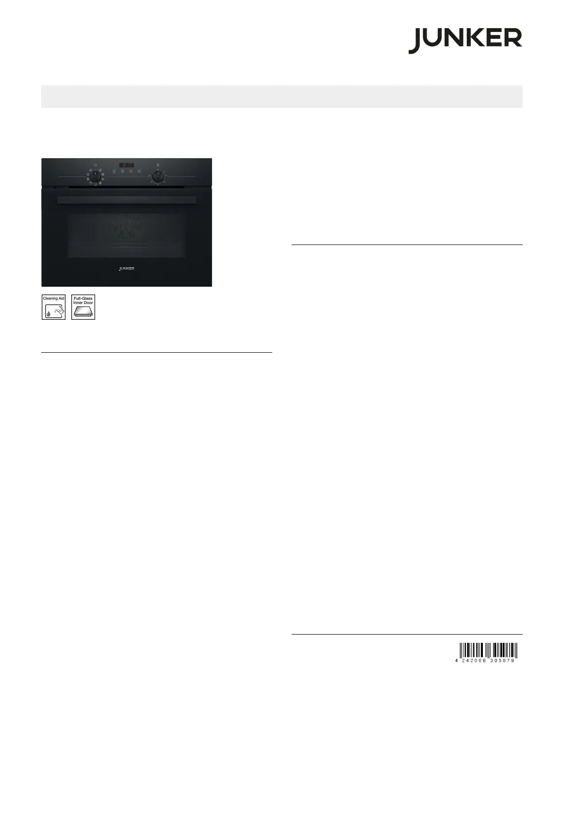 Przeczytaj poniżej 📖 instrukcję obsługi w języku polskim dla Junker JC4306061 (2 stron) w kategorii piekarnik. Ta instrukcja była pomocna dla 24 osób i została oceniona przez 4 użytkowników na średnio 4.2 gwiazdek