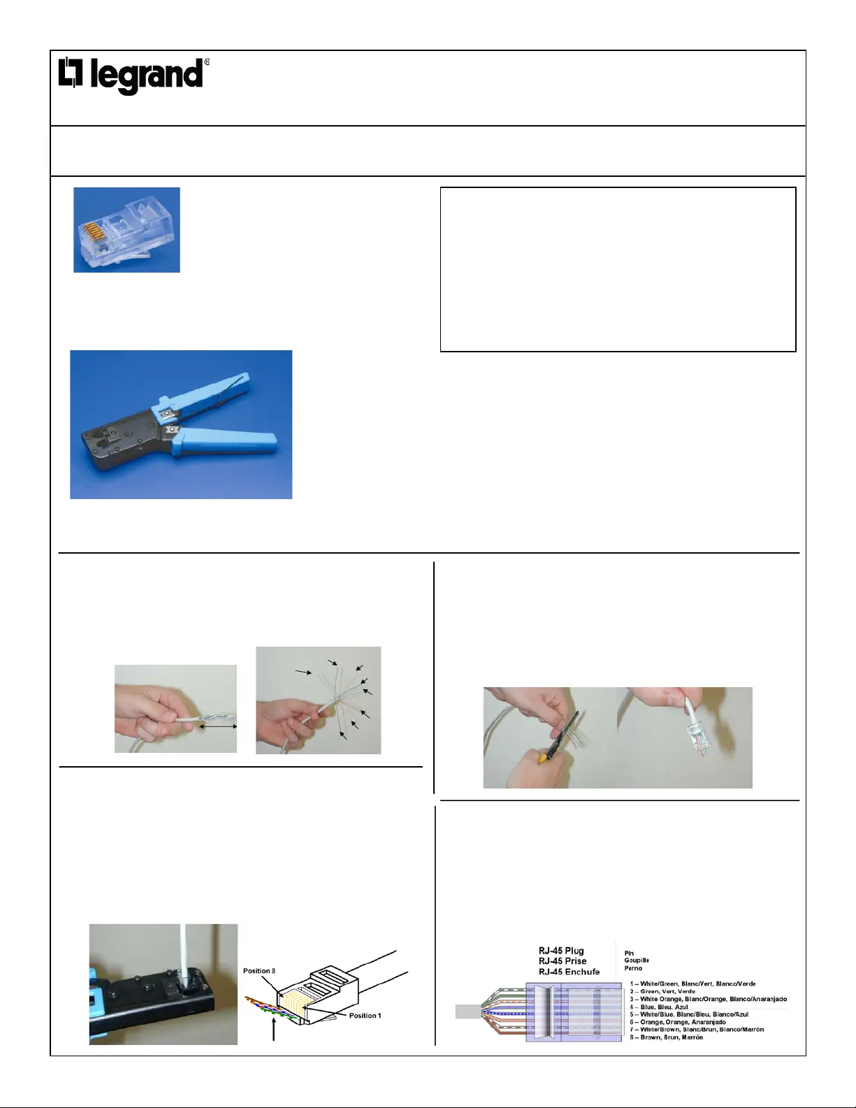 ou corde, puis redressez et alignez les fils selon la norme TIA/EIA 568A.