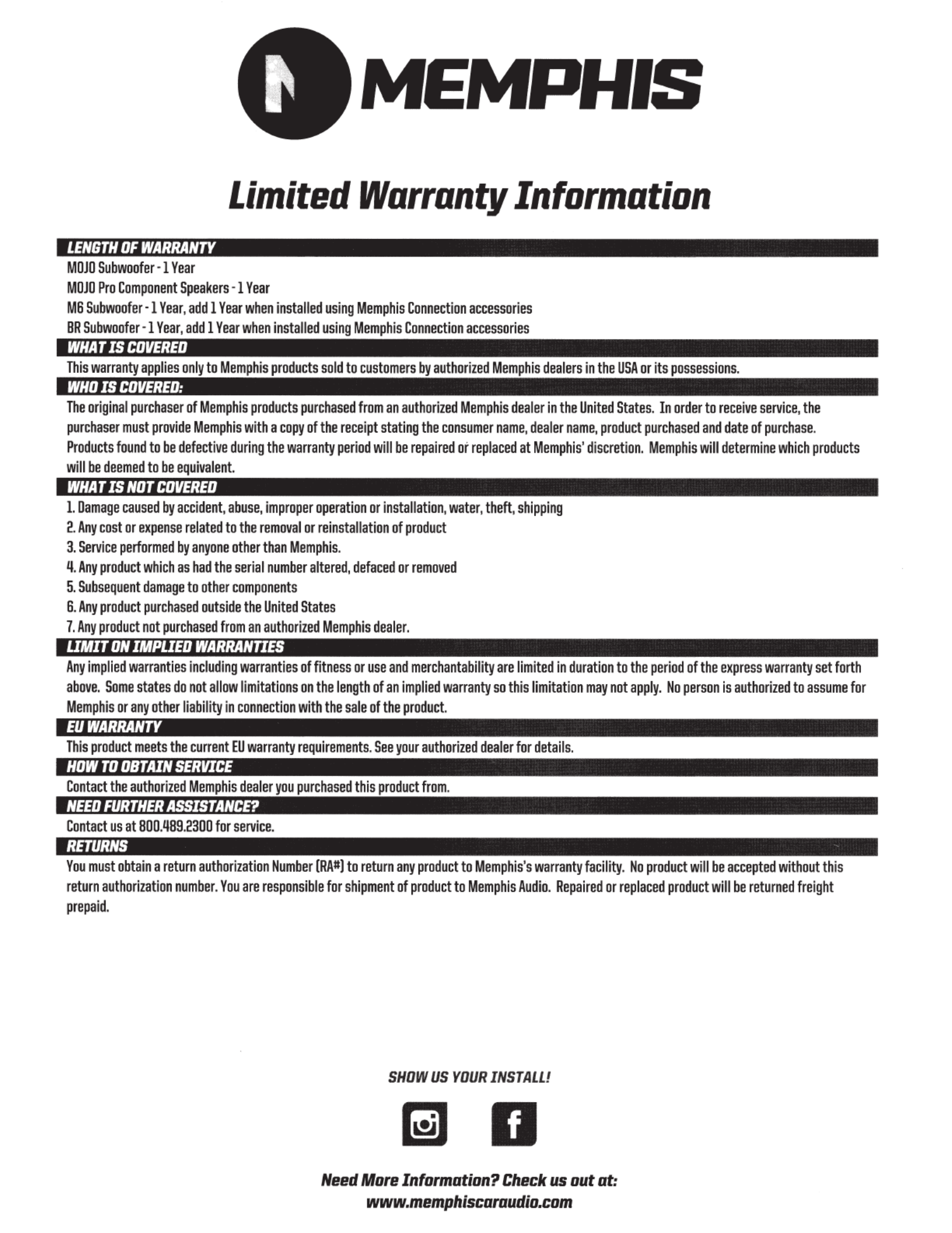 Instrukcje subwoofer Memphis Audio