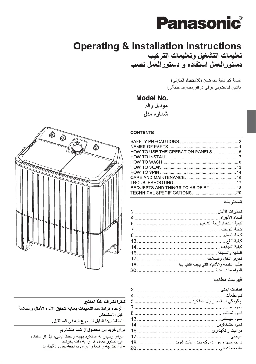 Przeczytaj poniżej 📖 instrukcję obsługi w języku polskim dla Panasonic NA-W1000B (20 stron) w kategorii pralka. Ta instrukcja była pomocna dla 18 osób i została oceniona przez 9.5 użytkowników na średnio 4.8 gwiazdek