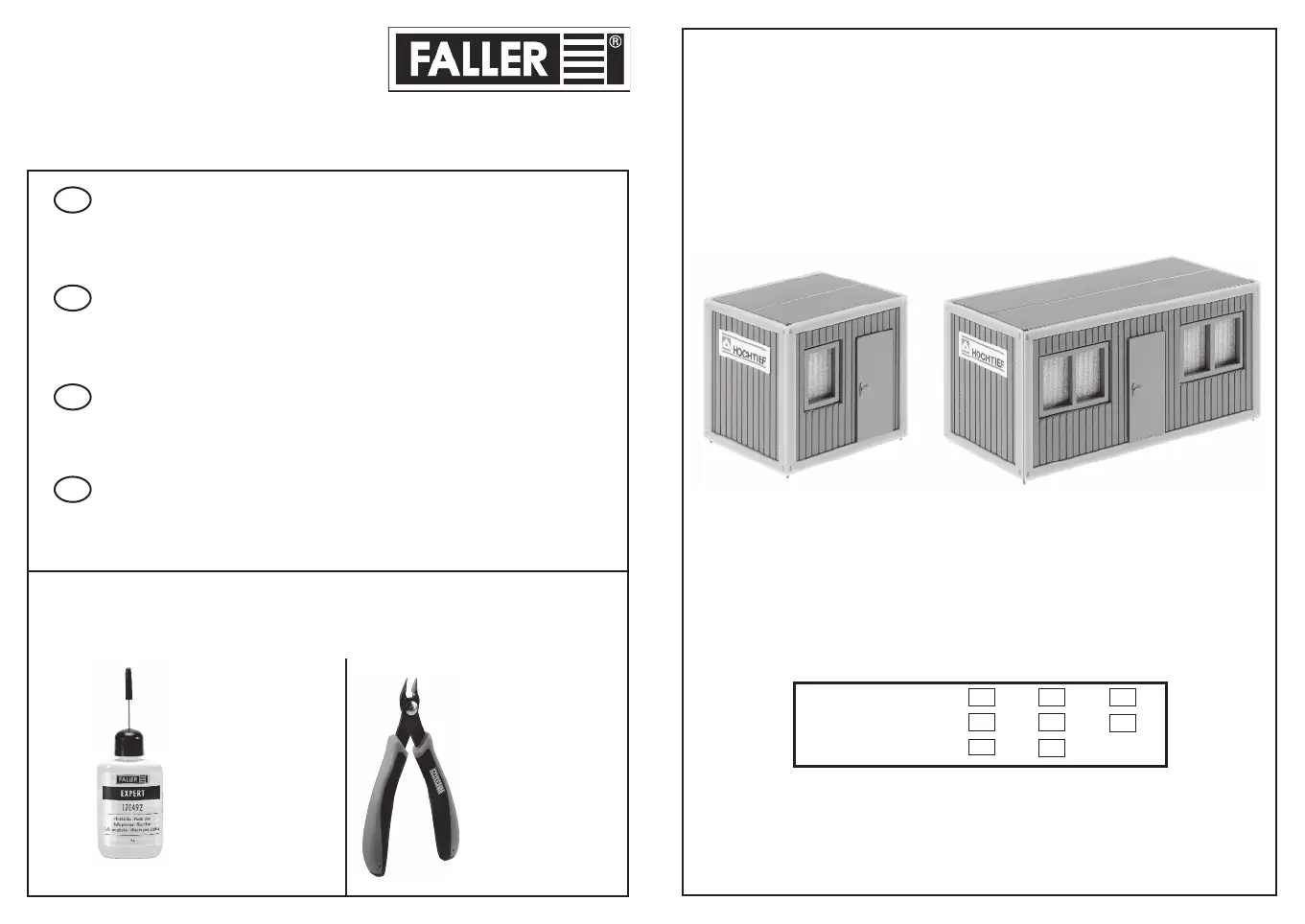 Pour l’assemblage du modèle, nous vous recommandons les articles FALLER suivants (non inclus dans le kit):