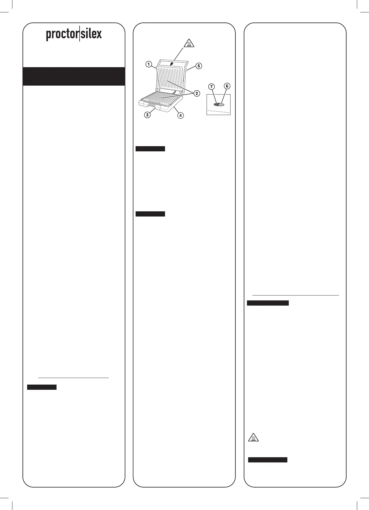 Przeczytaj poniżej 📖 instrukcję obsługi w języku polskim dla Proctor Silex 25440 (2 stron) w kategorii płyta grillowa. Ta instrukcja była pomocna dla 8 osób i została oceniona przez 4.5 użytkowników na średnio 4.4 gwiazdek