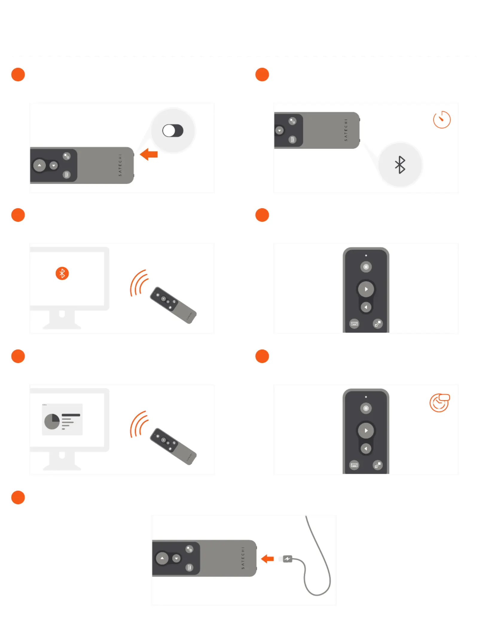 To recharge the remote, connect to a powered USB-C port using the included cable. Flashing red light indicates low battery.