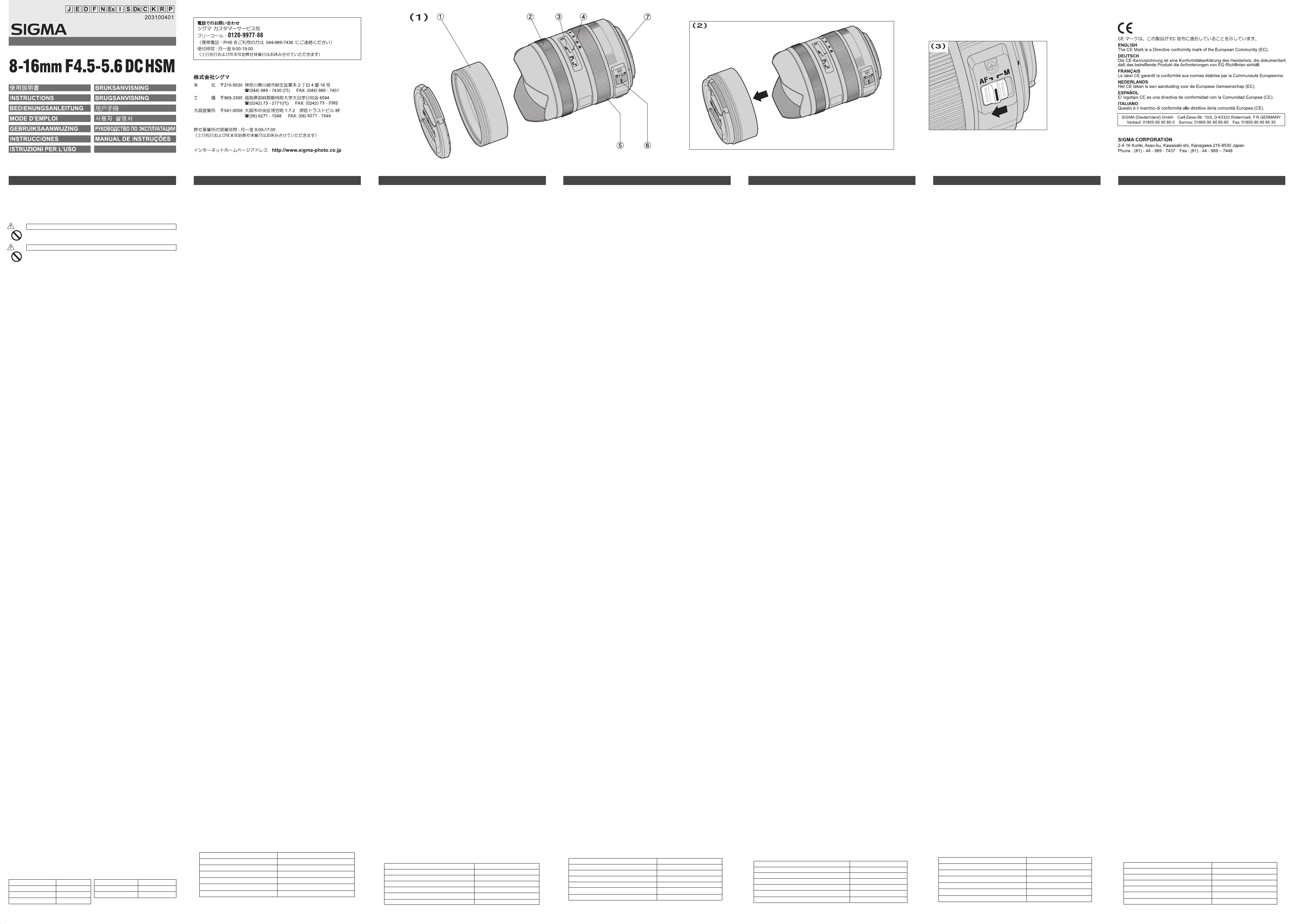 Instrukcja obsługi Sigma 8-16mm F4.5-5.6 DC HSM