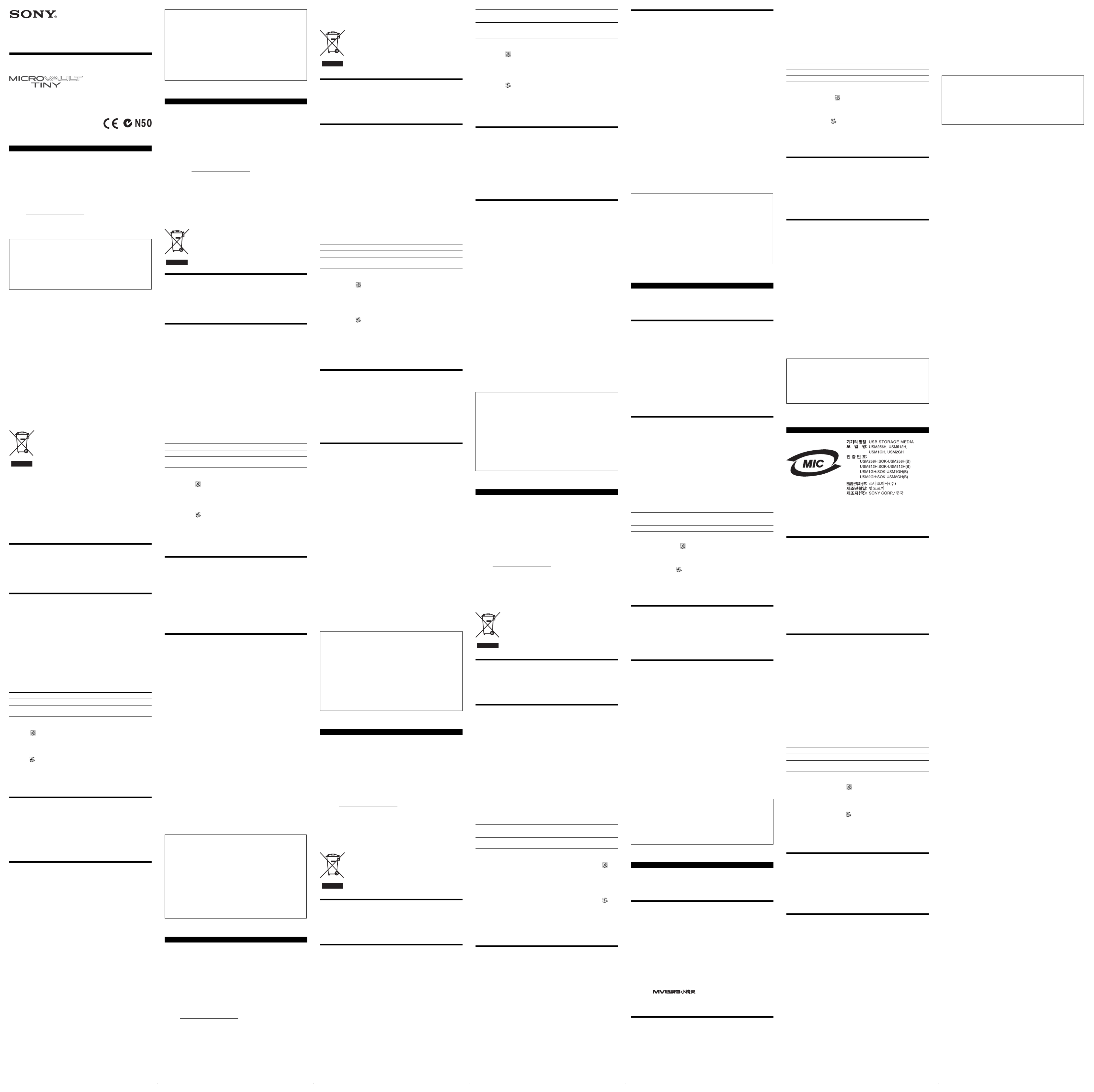 • Micro Vault Tiny는 Sony Corporation의 상표입니다.