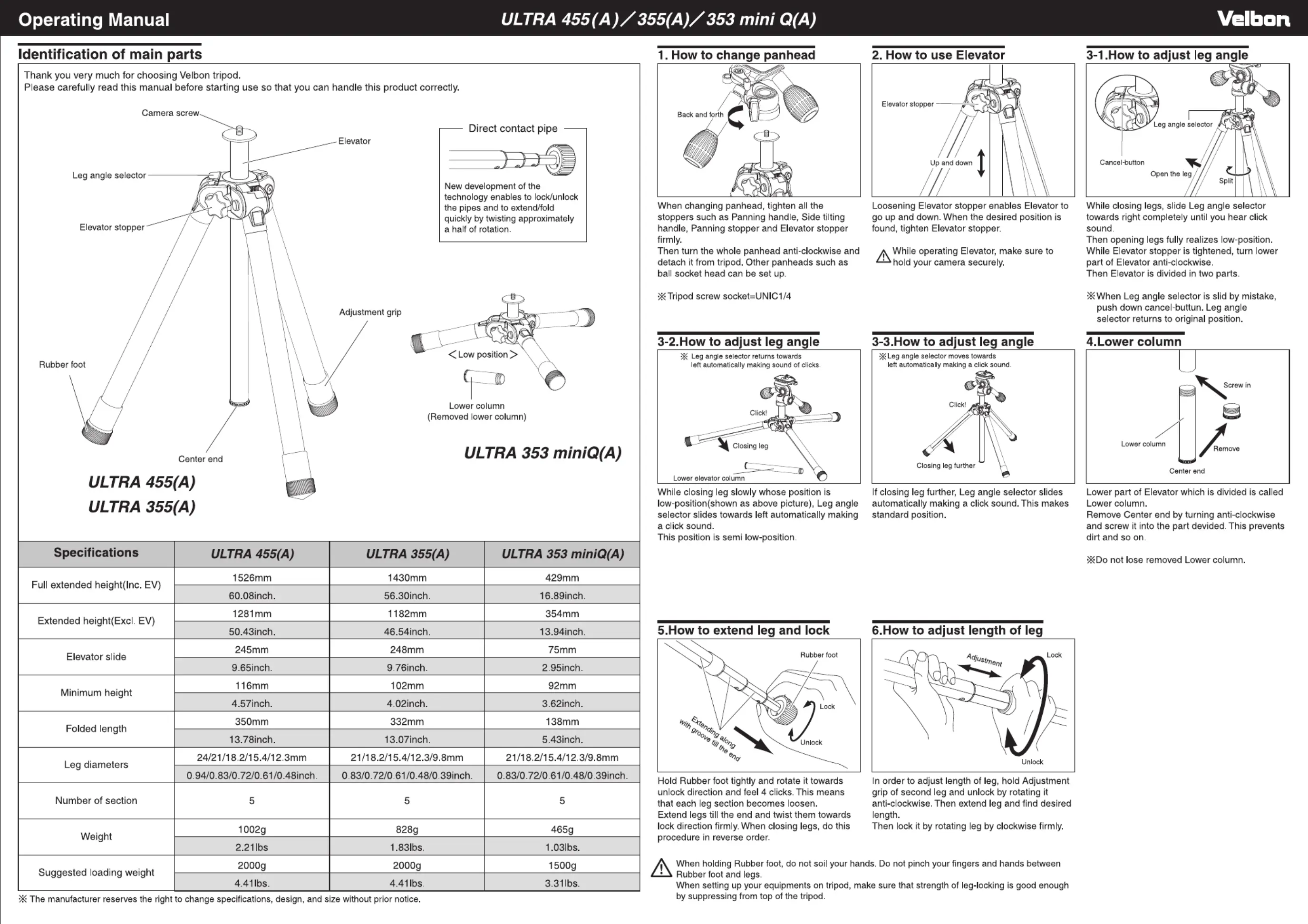 Instrukcja obsługi Velbon Ultra 455