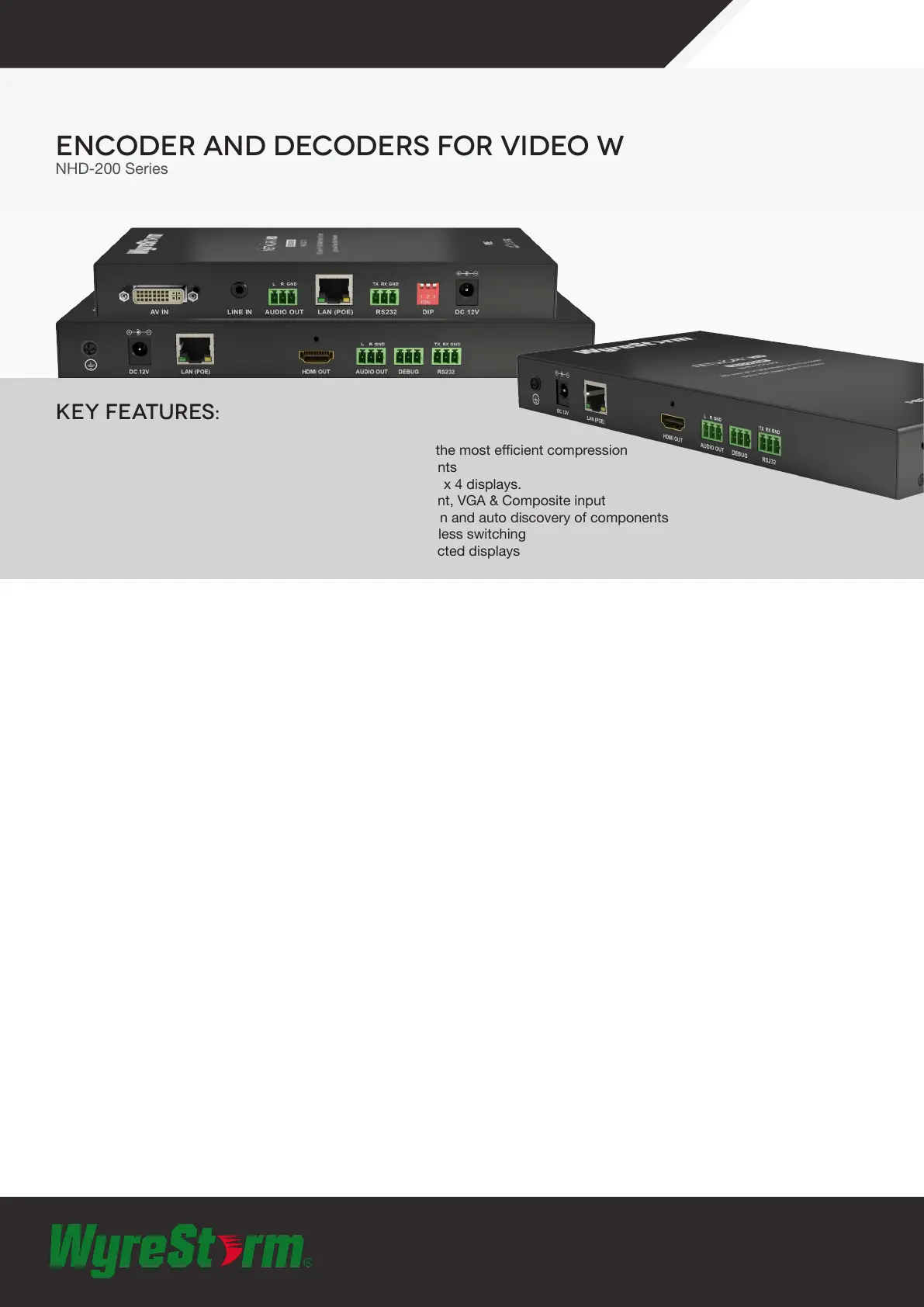 •  Powerful video wall functionality (NHD-210-RX only) up to 4 x 4 displays.