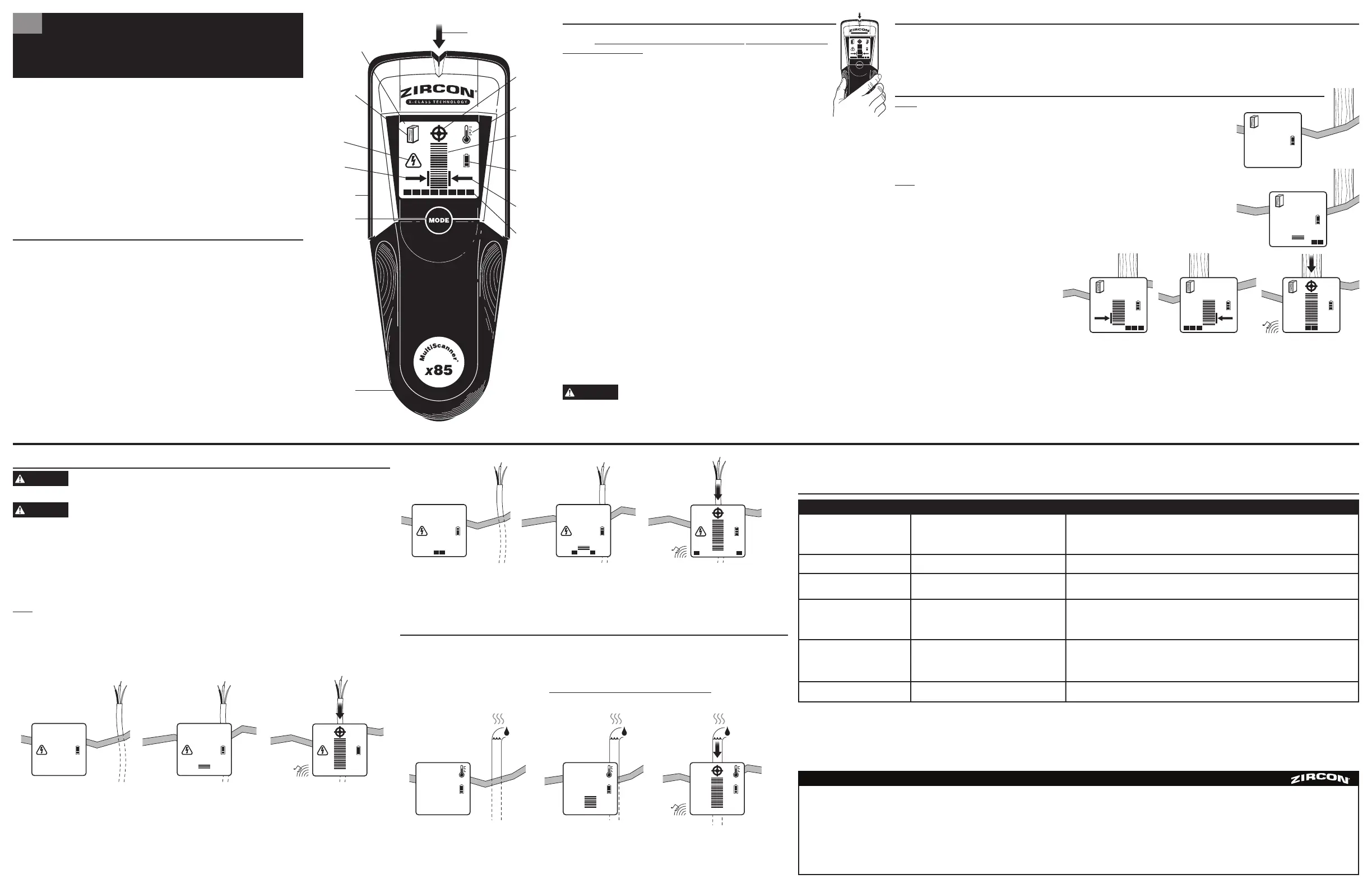 Note: Sensing depth and accuracy can vary due to moisture, content of materials, wall texture,
