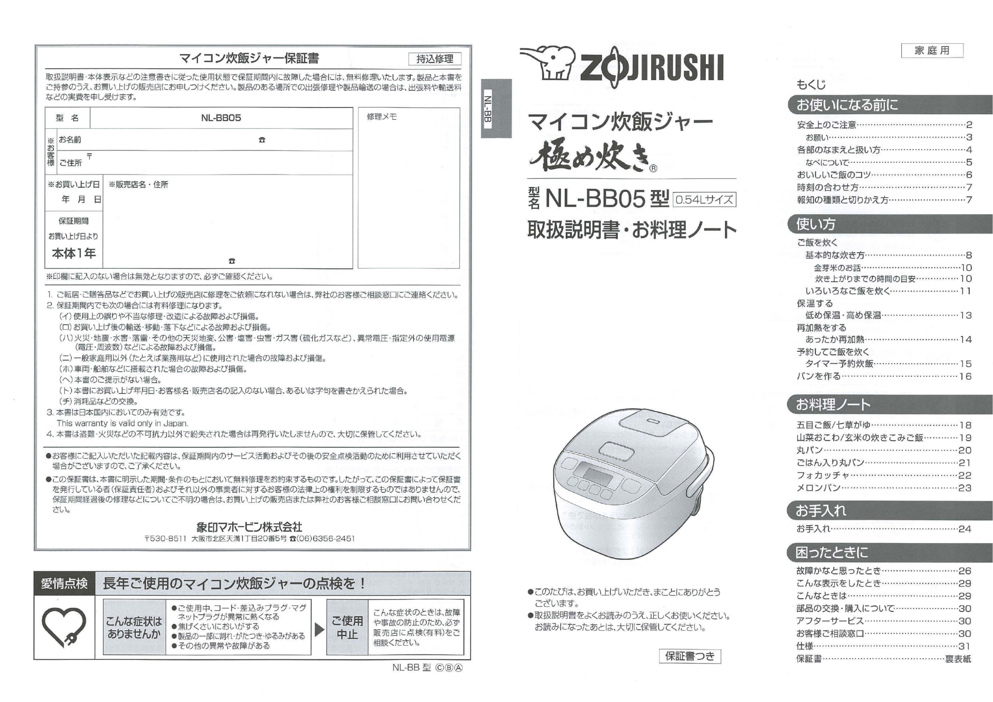 Instrukcja obsługi Zojirushi NL-BB05